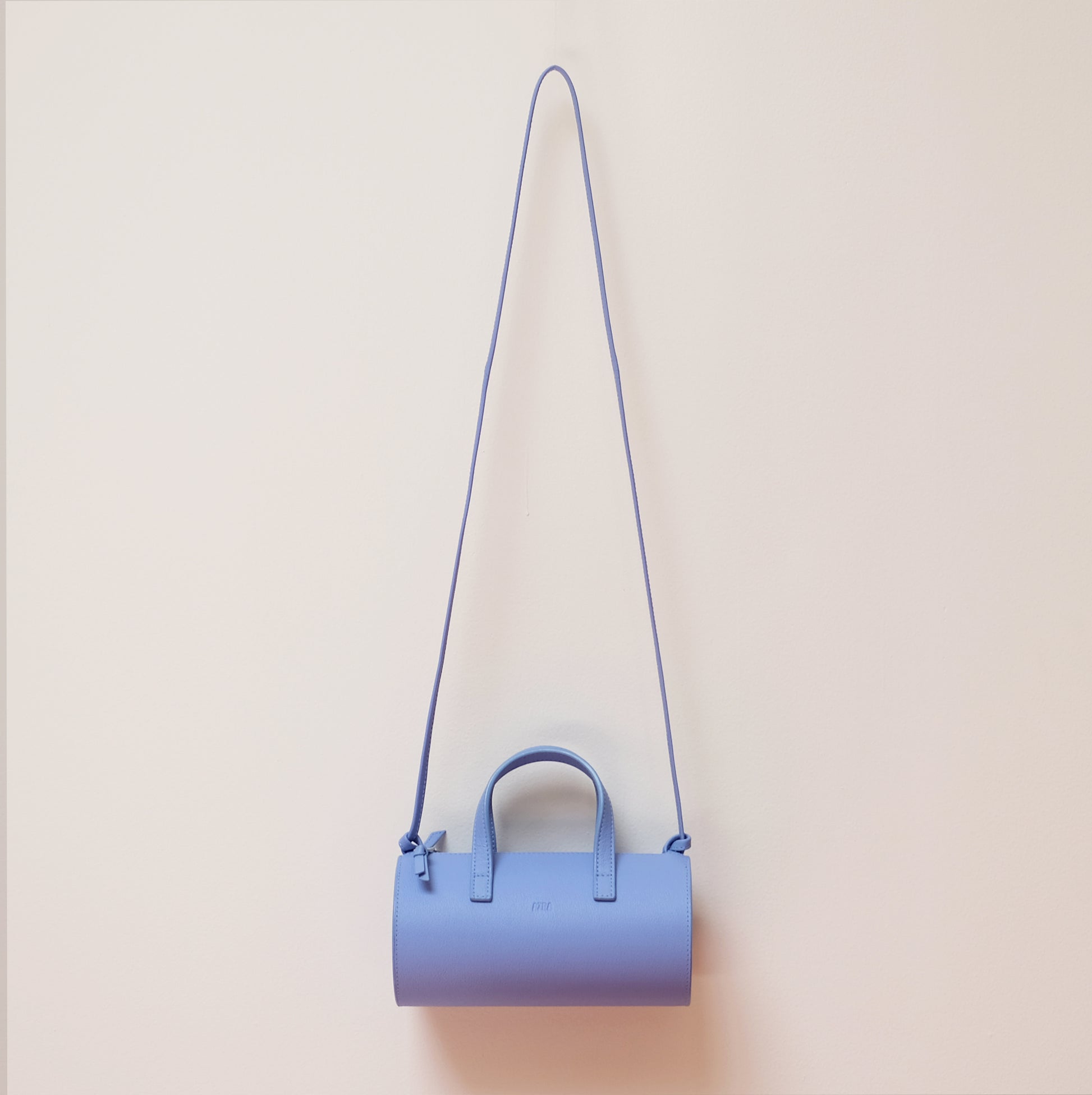 Pebbled sky blue camel leather sourced from the UAE, with YKK zipper. Can be worn as a clutch, or knot the strap into loops to wear as a cross-body, adjust the length for shoulder wear.