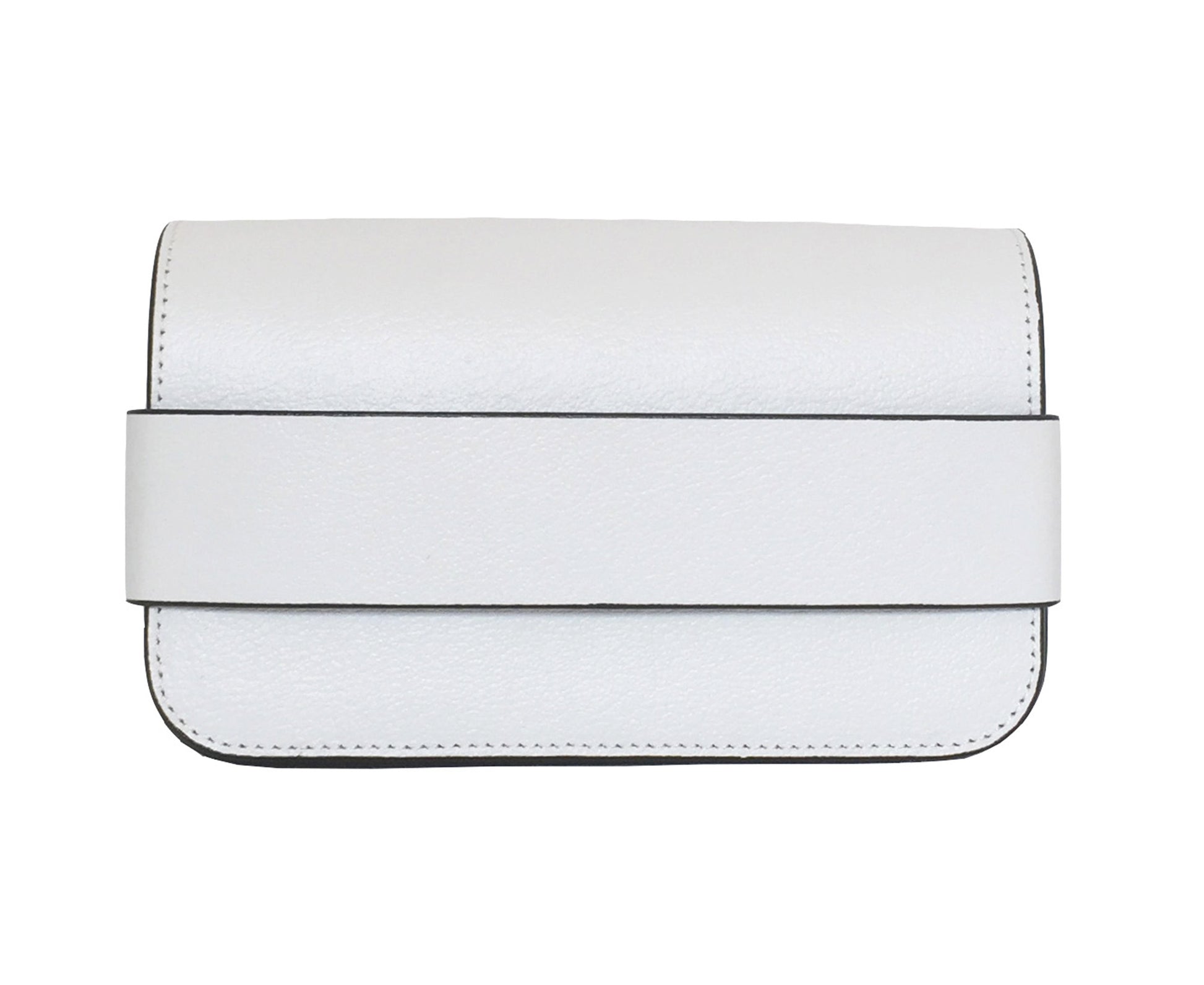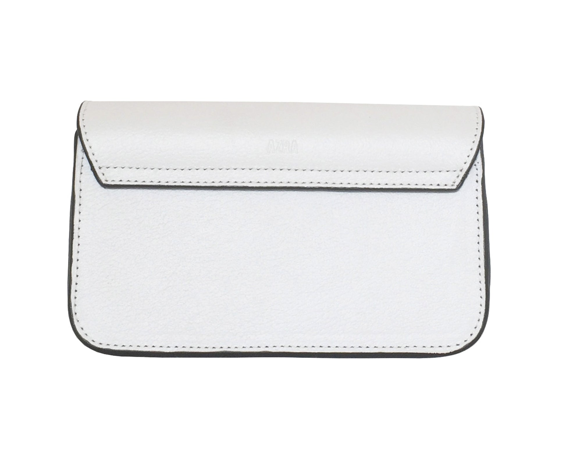 Pebbled white camel leather sourced from the UAE, with magnetic flaps. Can be worn as a clutch, loop straps around to wear on the waist, or as a shoulder bag. We made videos, don't worry.